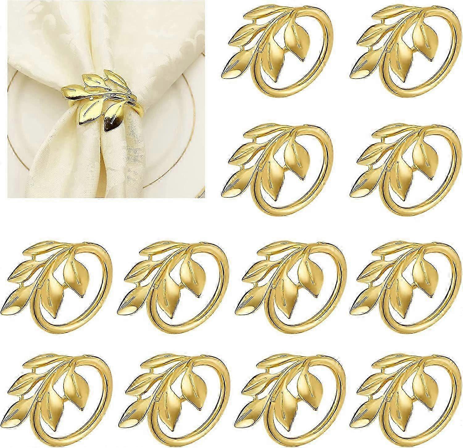 Elegant Gold Leaf Napkin Rings Set of 12 for Christmas Party Dinner Decor