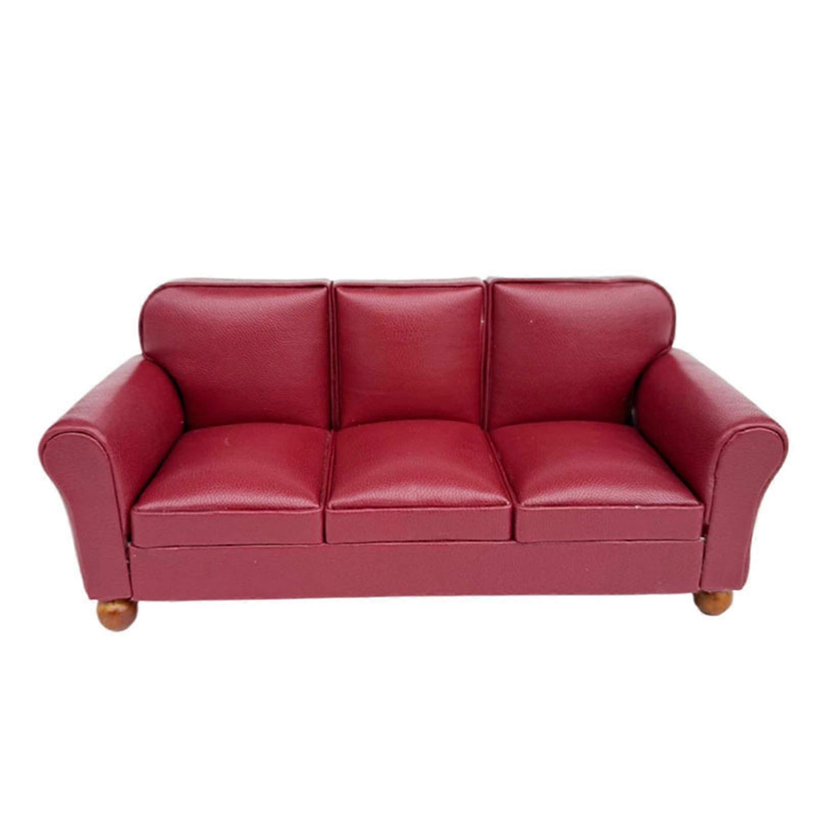 Elegant 1/12 Dollhouses Furniture Three Seats Sofa Armchair For Miniature Living Room And Bedroom Decoration Accessories Red