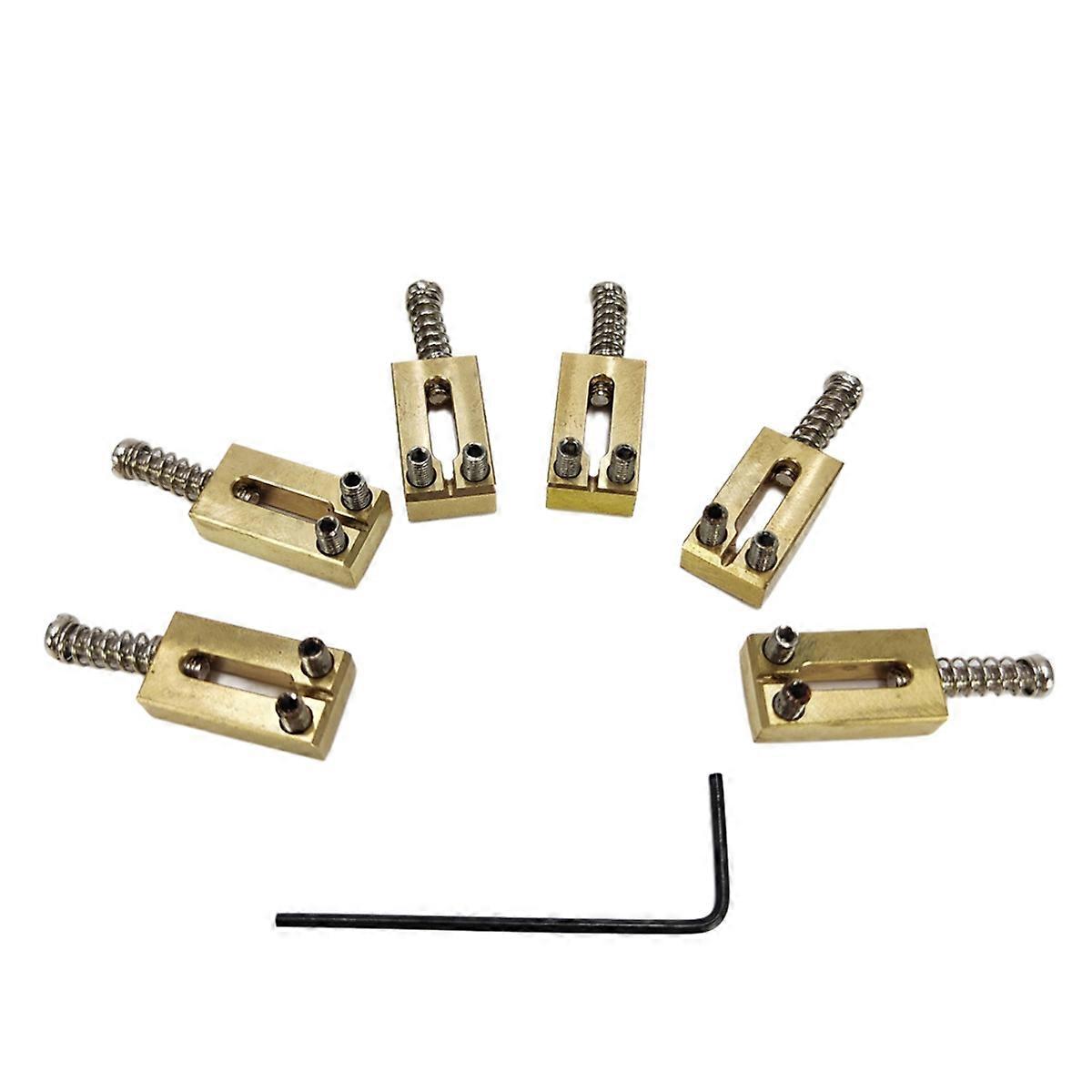 1. Made of brass. These saddles are a great upgrade/replacement for anyone, they can be used for Hardtail Bridge, for Tele or for Strat Bridge. 2. No burrs or burrs; brass nuts provide better tone and securely hold your strings. 3. Fits for Strat or for Tele electric guitars and can be used with for hardtail bridges and other bridges with 10.5MM string spacing. 4. The nut helps prevent string breakage, improves tone and sustain, and keeps your guitar in tune. Colour:Gold & Silver Material:brass Package Contents: 6 x Brass Saddle Bridge 1 x wrench Only the above package content, other products are not included. Note: Light reflection and different displays may cause the color of the item in the picture a little different from the real thing. The measurement allowed error is +/- 1-3cm.