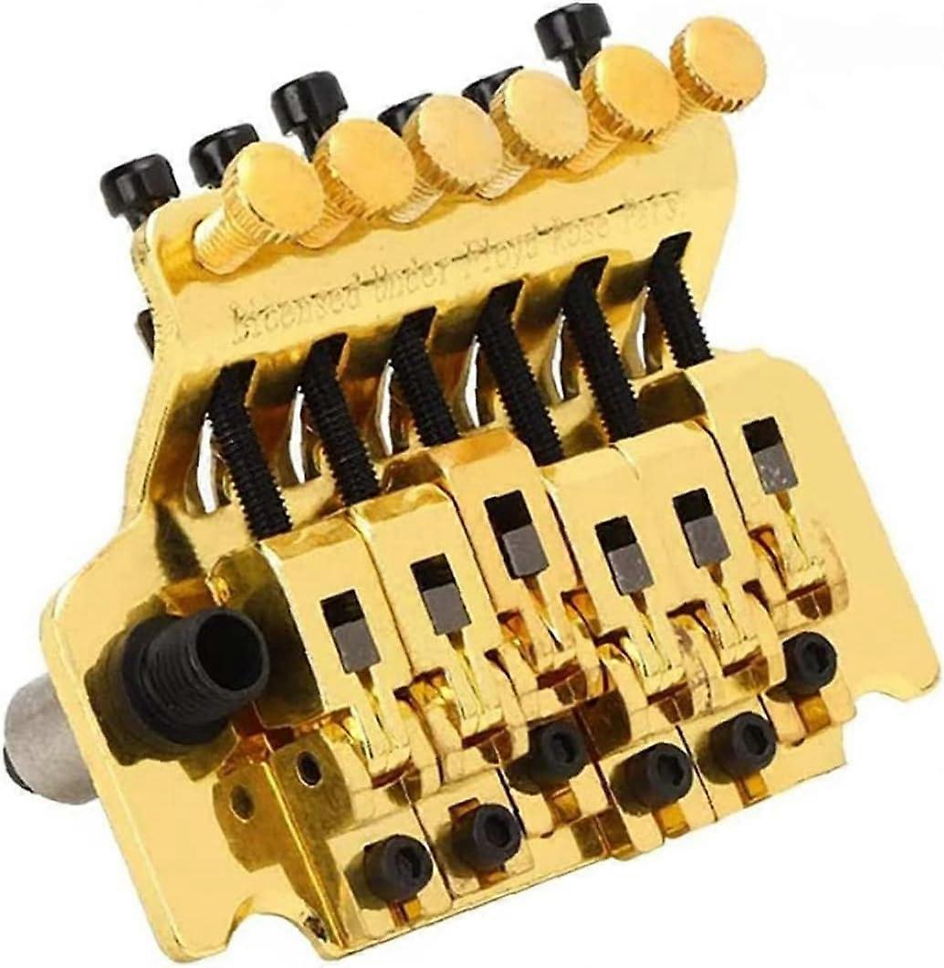 Compatible with: Double locking tremolo system compatible with floyd rose style guitar or other similar guitar. Feature: in addition to pressing down the handle, the double shake can also lift the handle up to make the string sound increase or decrease semitone, full tone or two or three full tone. Fine workmanship: This tremolo bridge is made of metal, good texture with fine workmanship,firm and durable to use. Double locking tremolo bridge system: Double vibrato system usually has two parts: neck lock and bridge vibrato system. Easy to assemble: The tremolo bridge comes with screws and wrench, it is easier for you to assemble. Description: Double locking tremolo system compatible with Floyd Rose style guitar or other similar guitar. Double vibrato system usually has two parts: neck lock and bridge vibrato system. In addition to pressing down the handle, the double shake can also lift the handle up to make the string sound increase or decrease semitone, full tone or two or three full tone. color: gold Note: Manual measurement, please allow slight errors on size. The colors may exist slight difference due to different screens. Package Including 1 X Guitar Nut 2 X Nut Screws 3 X Springs 1 X Spring Snap 2 X Pull Spring Screws 2 X Positioning Columns 1 X Rocker 1 X Vibrato Claw 2 X Hex Wrenchs