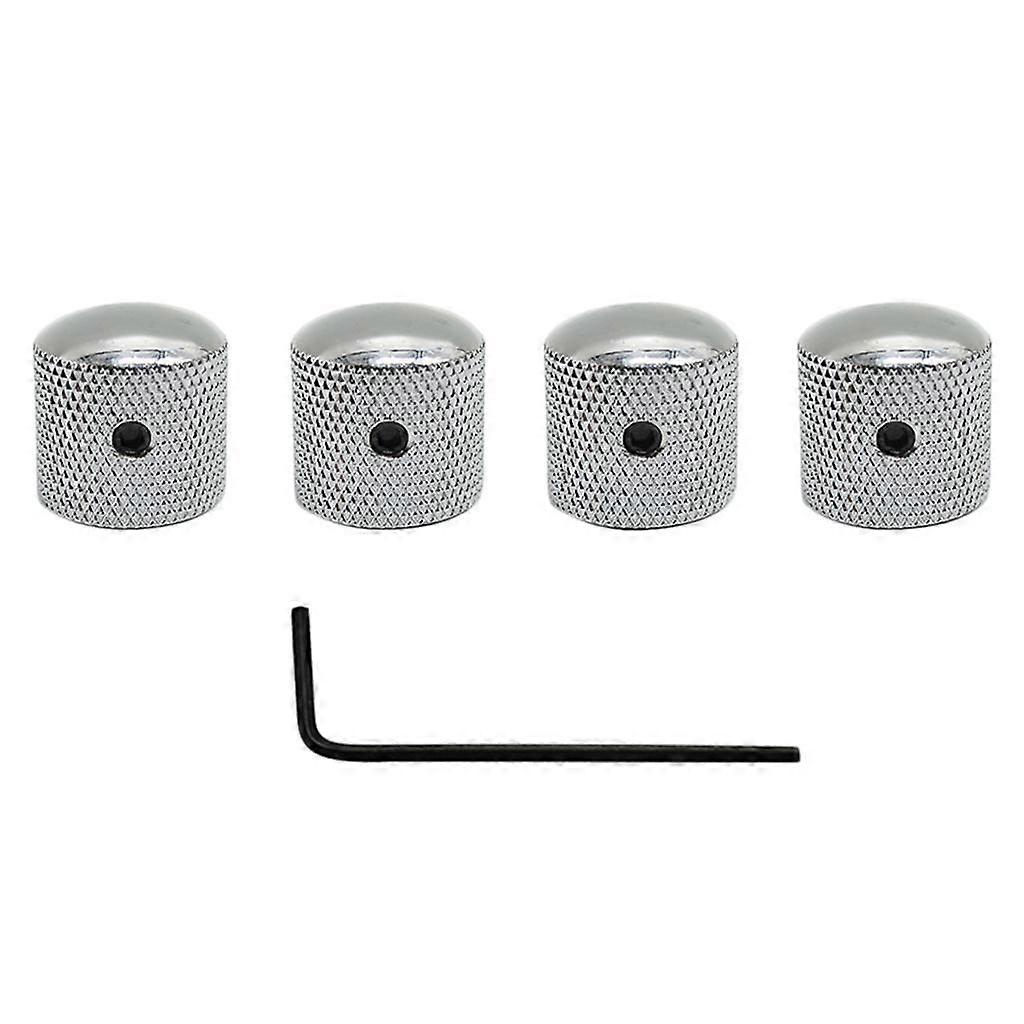 4 Metal Tone Volume Speed Control Dome Knobs for Electric Guitar Bass Silver