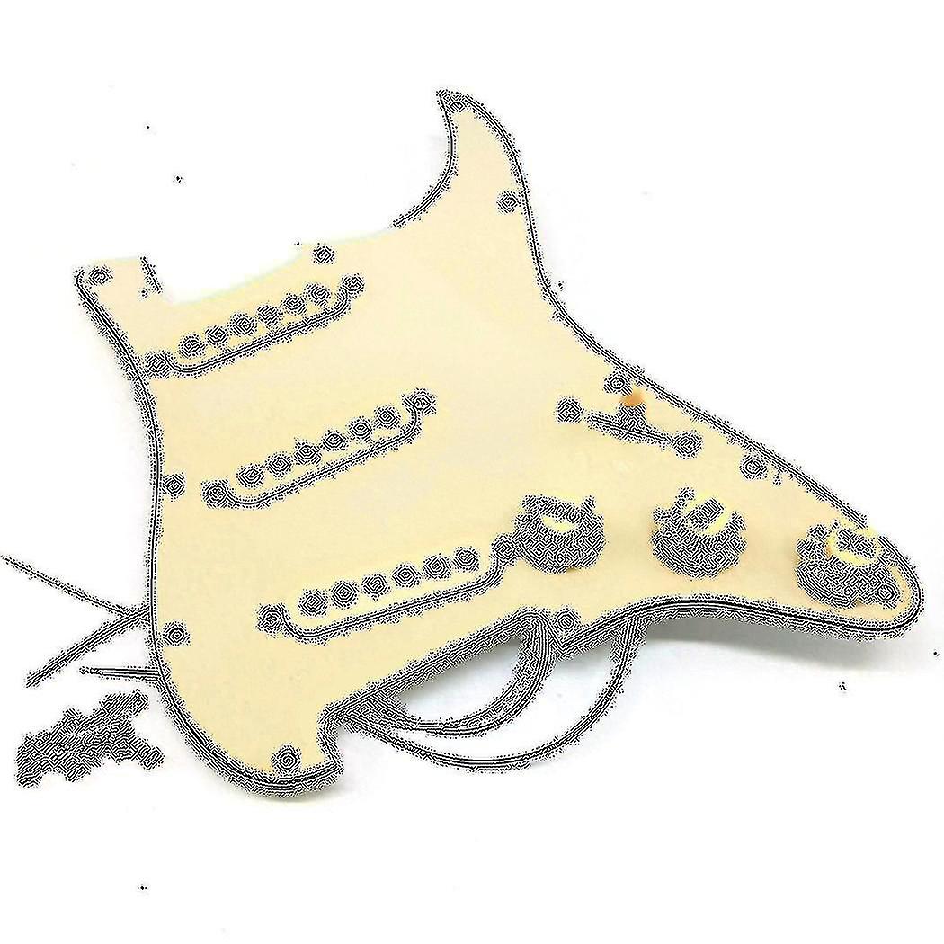 , high quality and testing is fine3-single coil pickups with ceramic magnets, 1-ply 11 screw holes in the side1 volume and 2 tone control knobsFit for electric guitarMaterial:Metal+PVCcolour:yellowPackage Contents:1 * Prewired Pickguard SetOnly the above package content, other products are not included.Note: Light and different displays may cause the color of the item in the picture a little different from the real thing. The measurement allowed error is +/- 1-3cm.