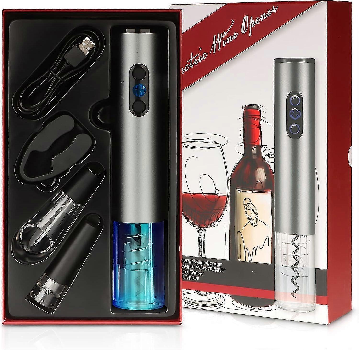 Electric Wine Opener Set, Frosted Silver, Automatic