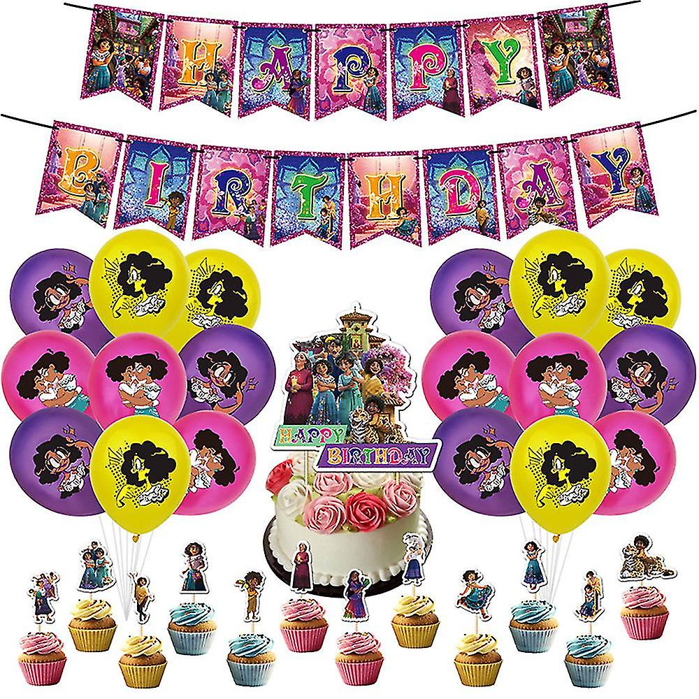 Encanto Mirabel Theme Balloons Banner Cake Topper Set Kids Birthday Party Decoration