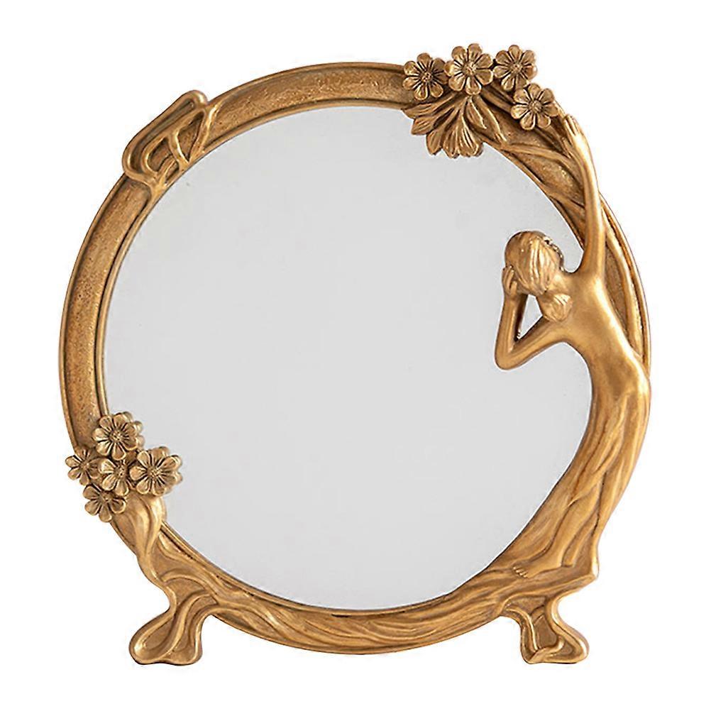 Vintage Round Makeup Mirror for Women with Embossed Design, Durable HD Reflective Surface, Retro Vanity Mirror for Bedroom & Travel Use