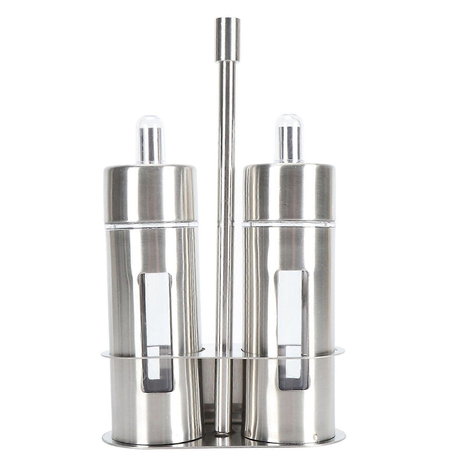 Oil and Vinegar Cruets 80ml Stainless Steel Olive Oil Dispenser Bottle Set with Base Stand Transparent Window for Kitchen