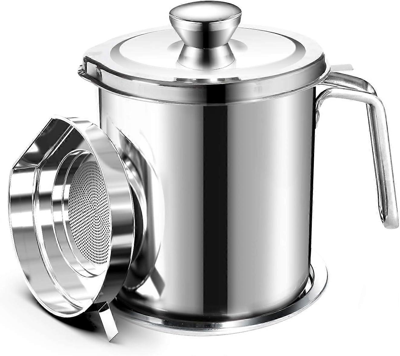 Oil Strainer Pot Grease Can Food Strainer Stainless Steel Oil Storage Container with Fine Mesh Strainer Dust-proof Lid Non-slip Tray for Storing Fryin