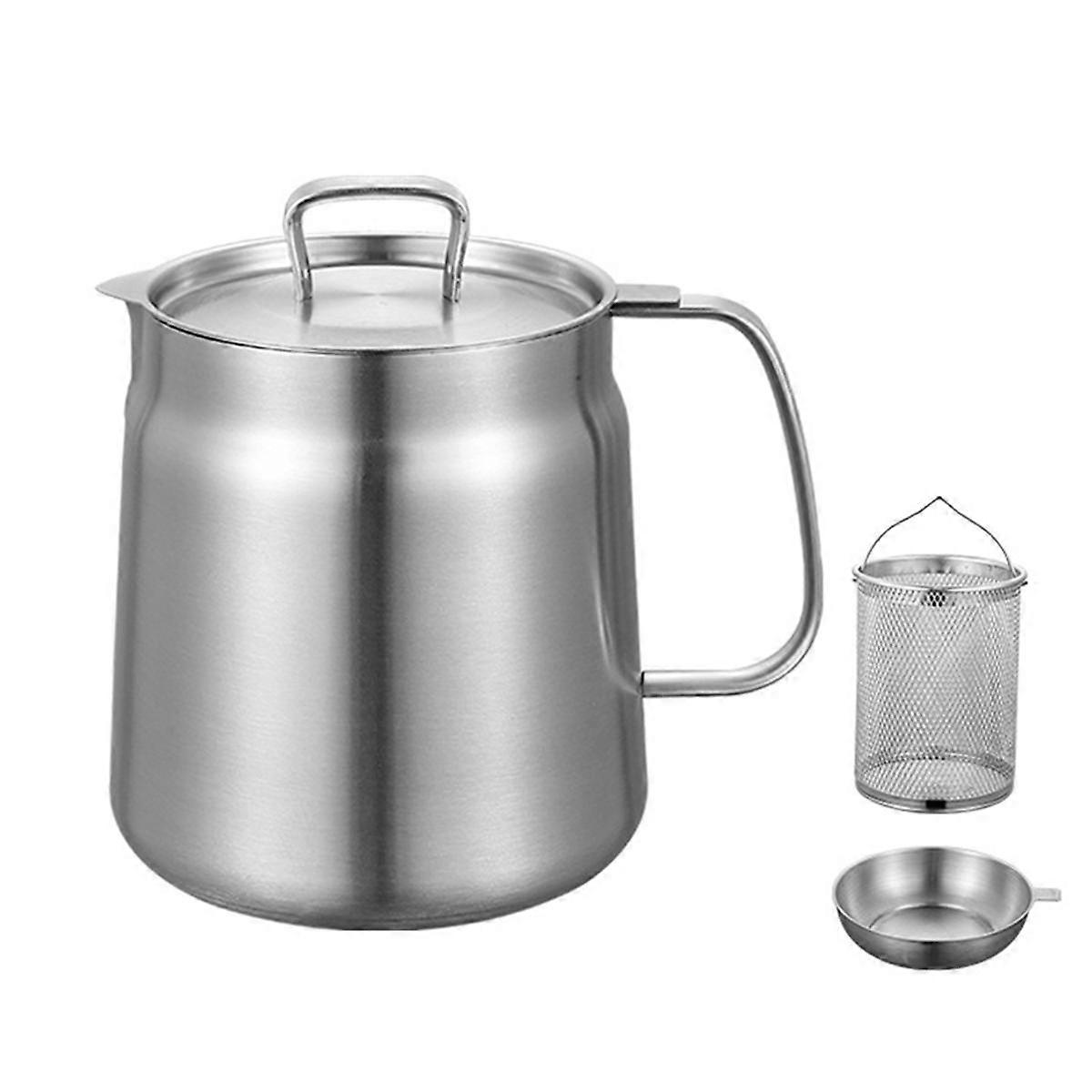 Oil Pot 2L, Oil Pot Stainless Steel Large Capacity Oil Fryer and Filter Cup Combo Versatile Oil Filter for Kitchen