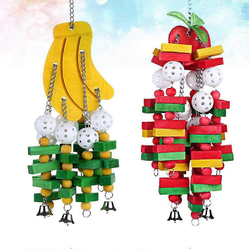 Foraging Toys For Parrots Wood Material Bite Resistant Bell Sound Pet Birds 2Pcs