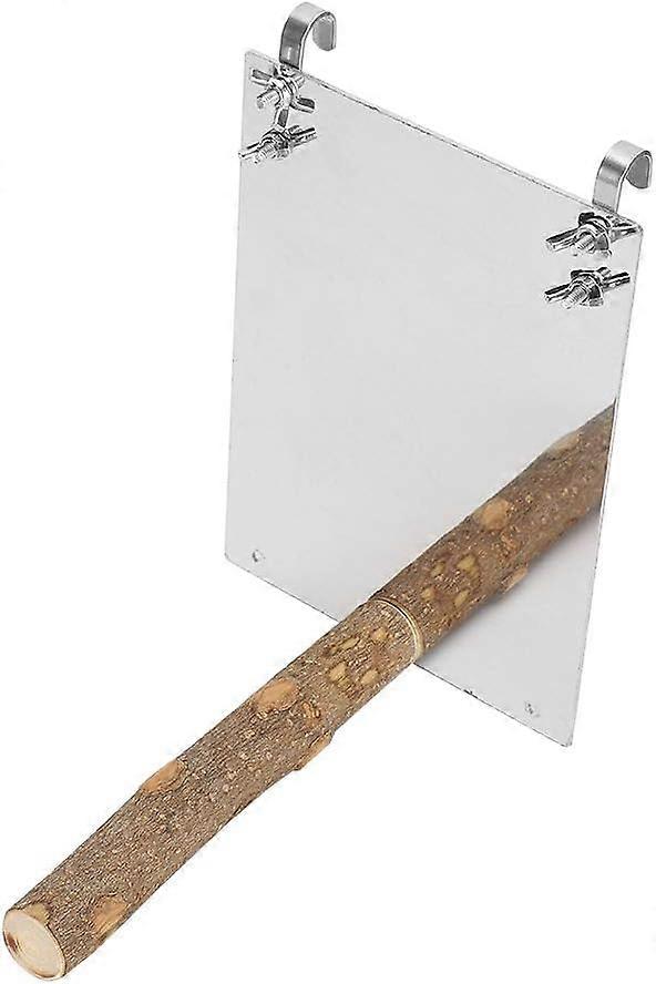 Parrots Mirror, Stainless Steel Bird Mirror with Wooden Standing Rod for Parakeet Cockatiel Conure Lovebirds Finch Canaries
