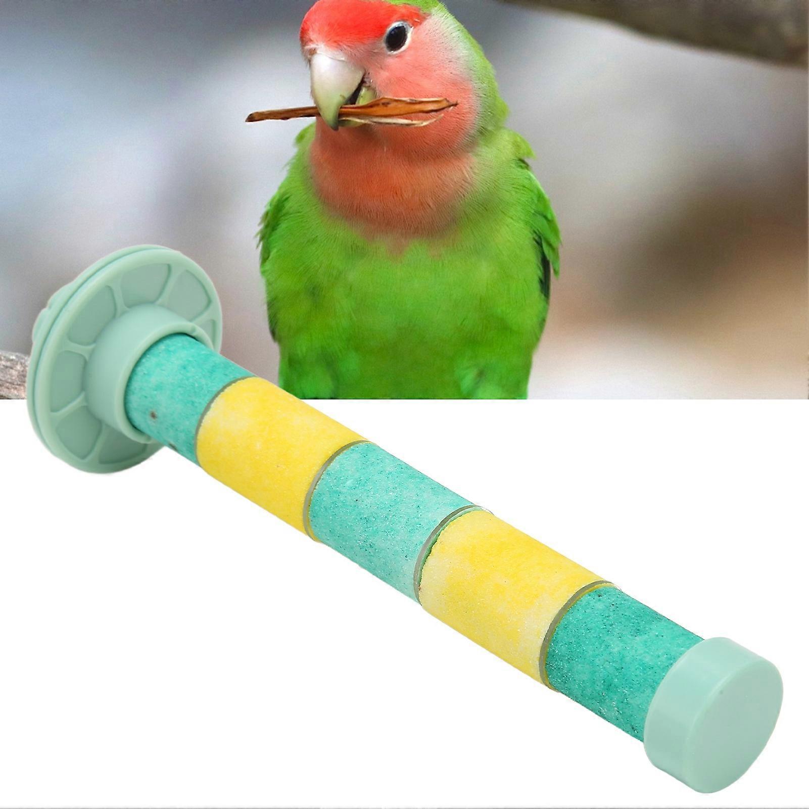 Parrot Quartz Sand Perch Paw Beak Grinding Pet Bird Cage Stand for Bird Parrot Budgies Parakeet Cockatiels Green Yellow