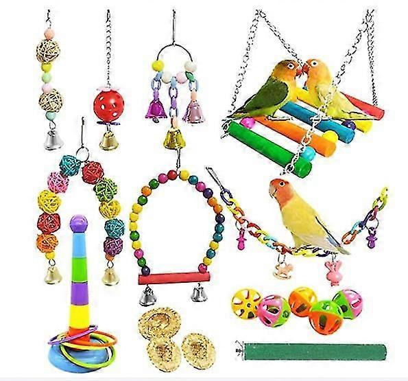 Parrot Hammock Bell Toys - 8 Packs Bird Swing Chewing Toys For Small Parakeets, Cockatiels, Conures