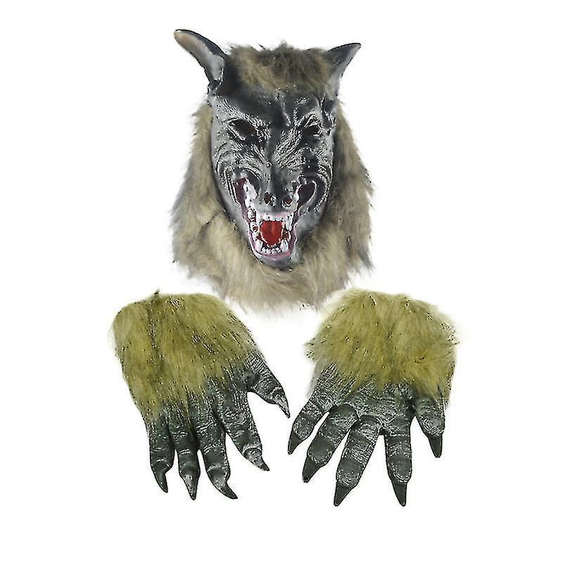 Wolf Mask Set Gloves Halloween Latex Rubber Wolf Mask Werewolf Gloves Costume Party Scary Decor No188