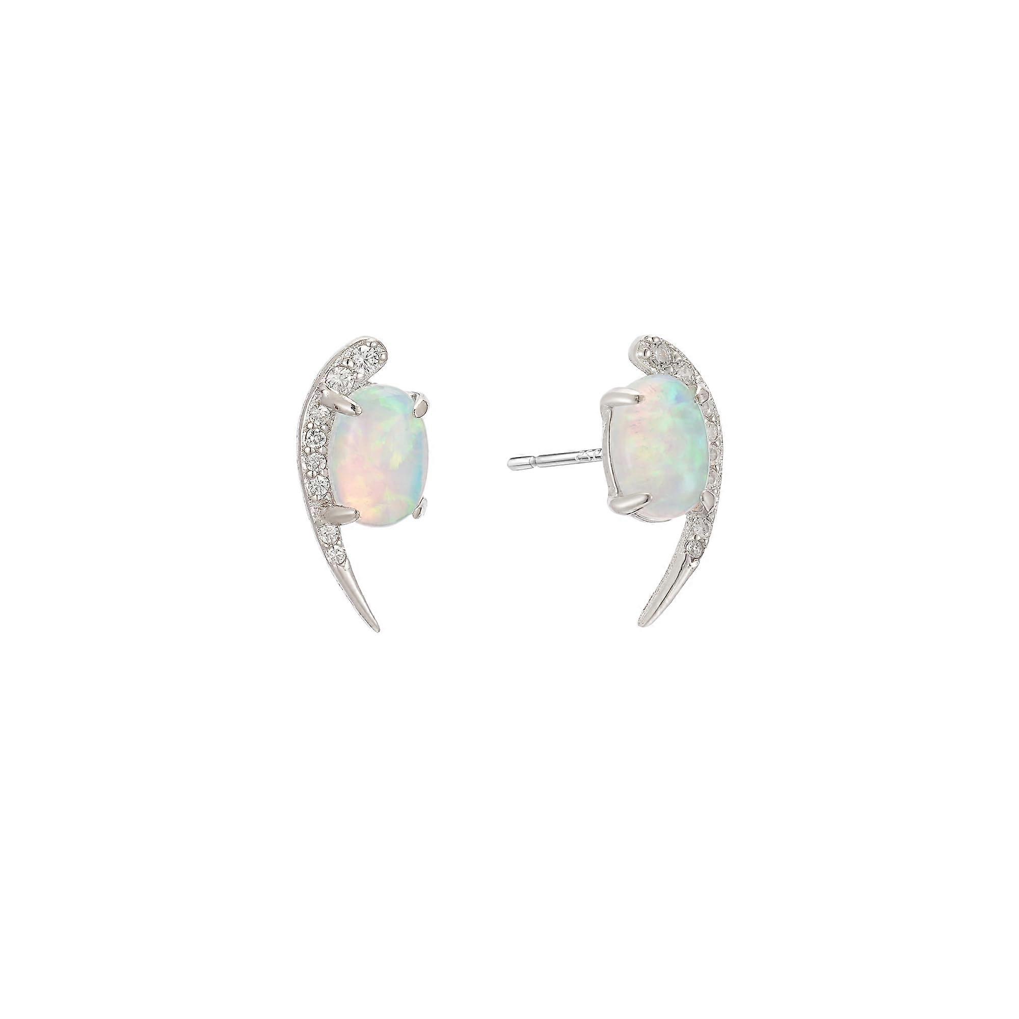 Opal Stud Earrings 925 Sterling Silver Post Moon Earring with Cubic zircon, Hypoallergenic Stud Earring Dainty Trendy Jewelry for Women