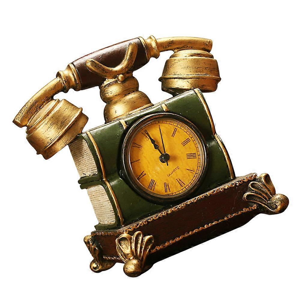Resin Telephone Clock Decor for Office and Home 2Pcs Desktop Ornament