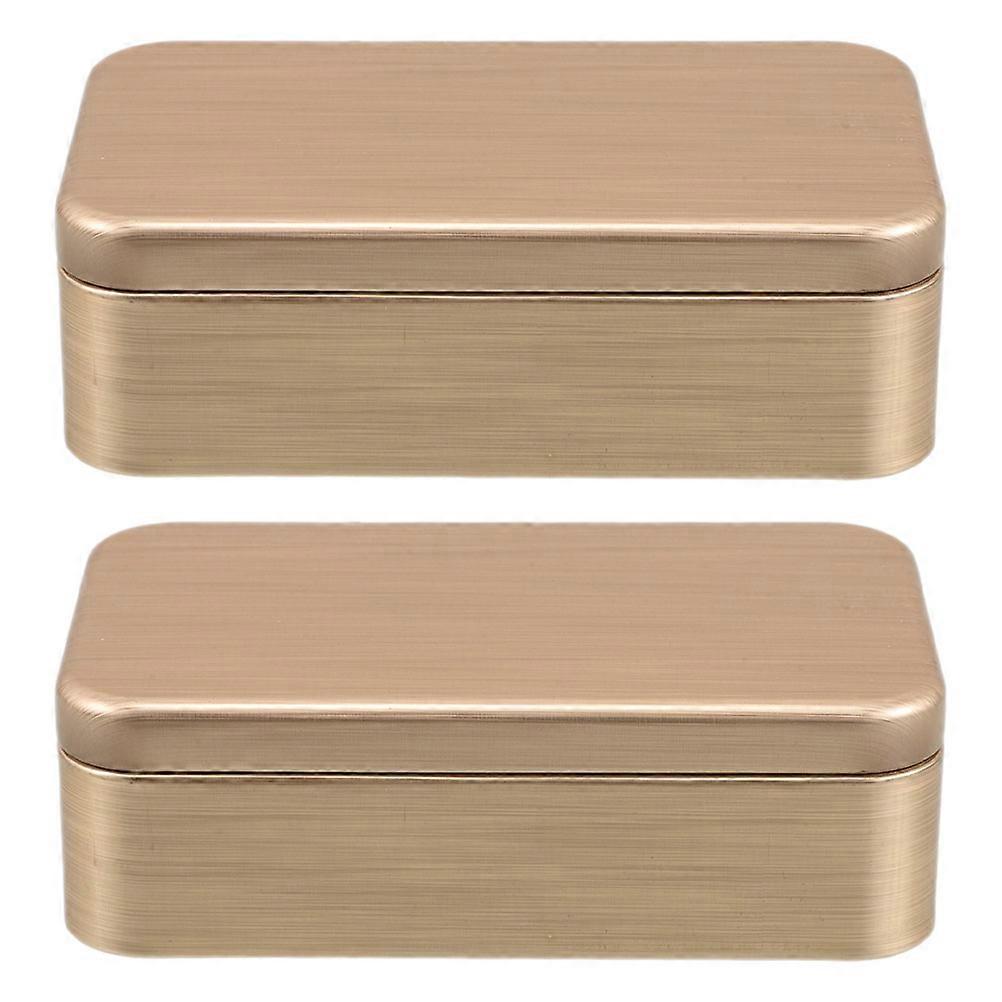 Brushed Tinplate Box Container For Office And Home 10.90X6.40X3.50CM Stylish Golden 2Pcs