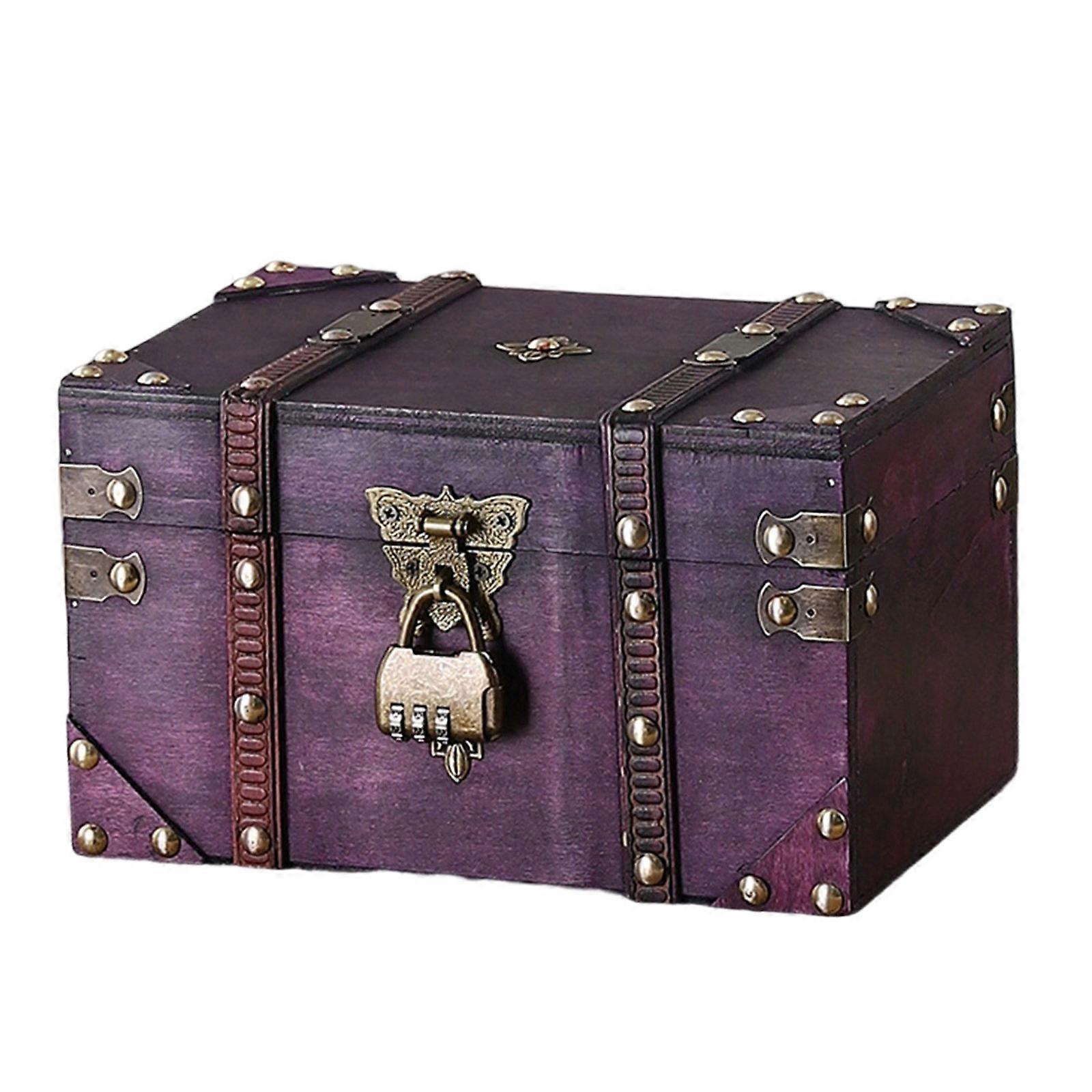 Antique Wooden Jewelry Box With Secure Lock Decorative Storage Container For Office Home Accessories Display Multicolor