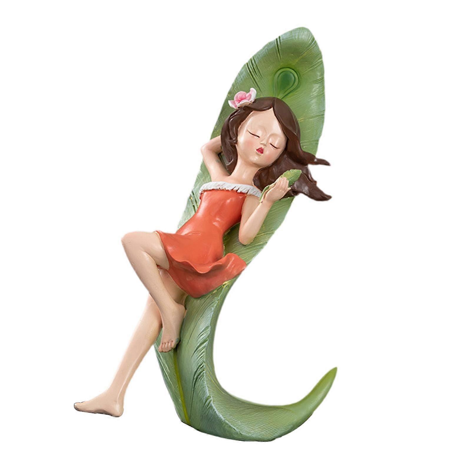 Feathers Girl Statue Home Decor for Office Bookcase Dining Room Orange Green