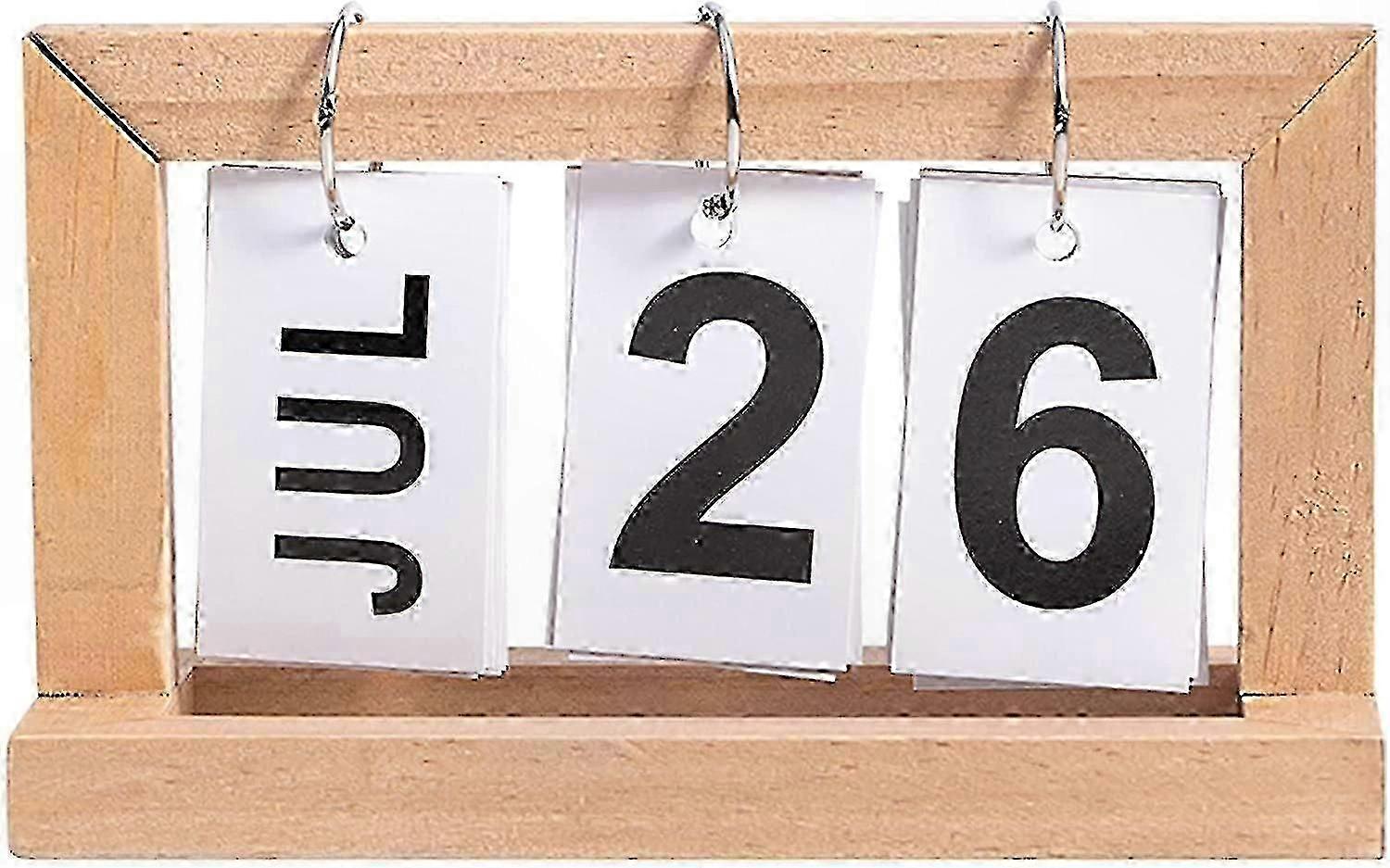 Vintage Wooden Desk Calendar with Flip Design and Retro Style for Office or Home Decor