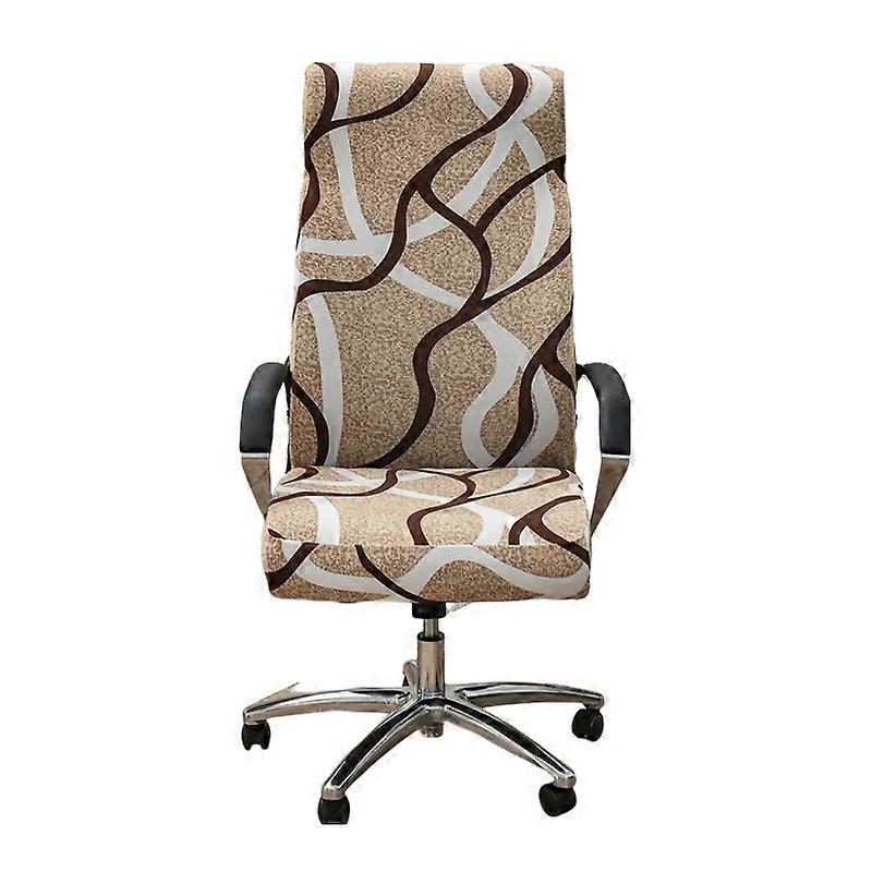Office Chair Cover Brown Wave Line Large Non Slip Rotating Seat Case Universal Armrest Protector Chair Covers