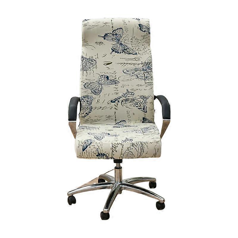 Office Chair Cover White Blue Butterfly Design Large Non Slip Seat Case Universal Armrest Protector Chair Covers