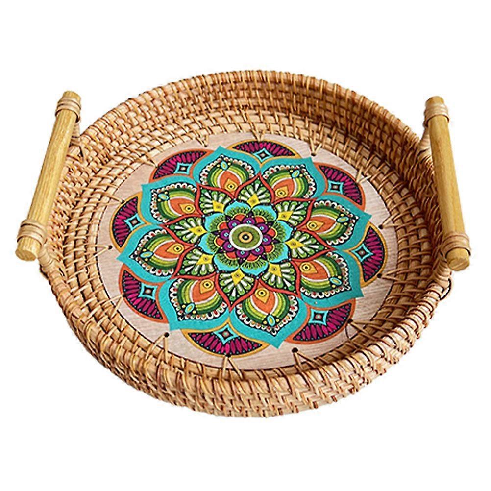 Decorative Trays Brown Rattan Woven Serving Plate For Office Use 22.00X22.00X3.00CM 1 PCS