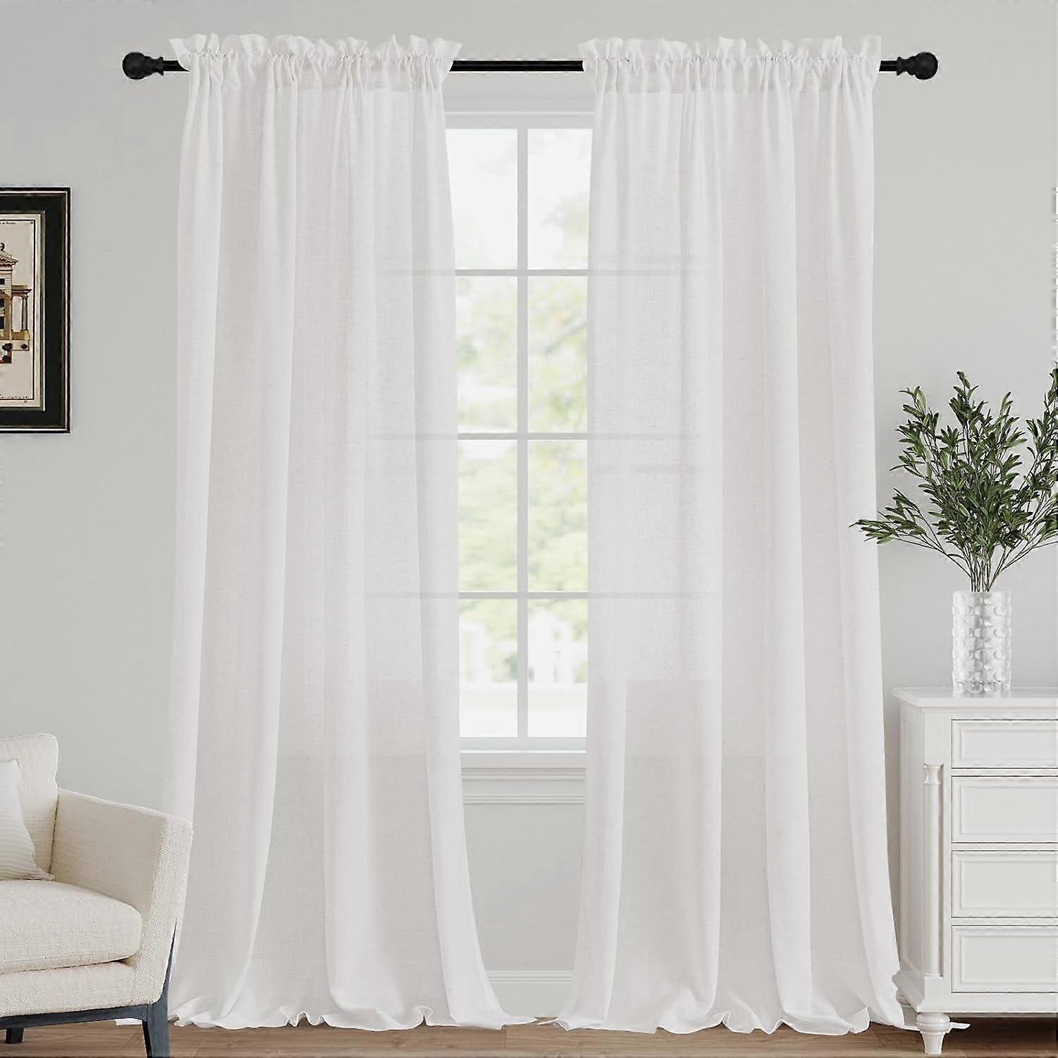 Off White Linen Curtains 96 Inch Length 2 Panels Set Natural Semi Sheer Curtains