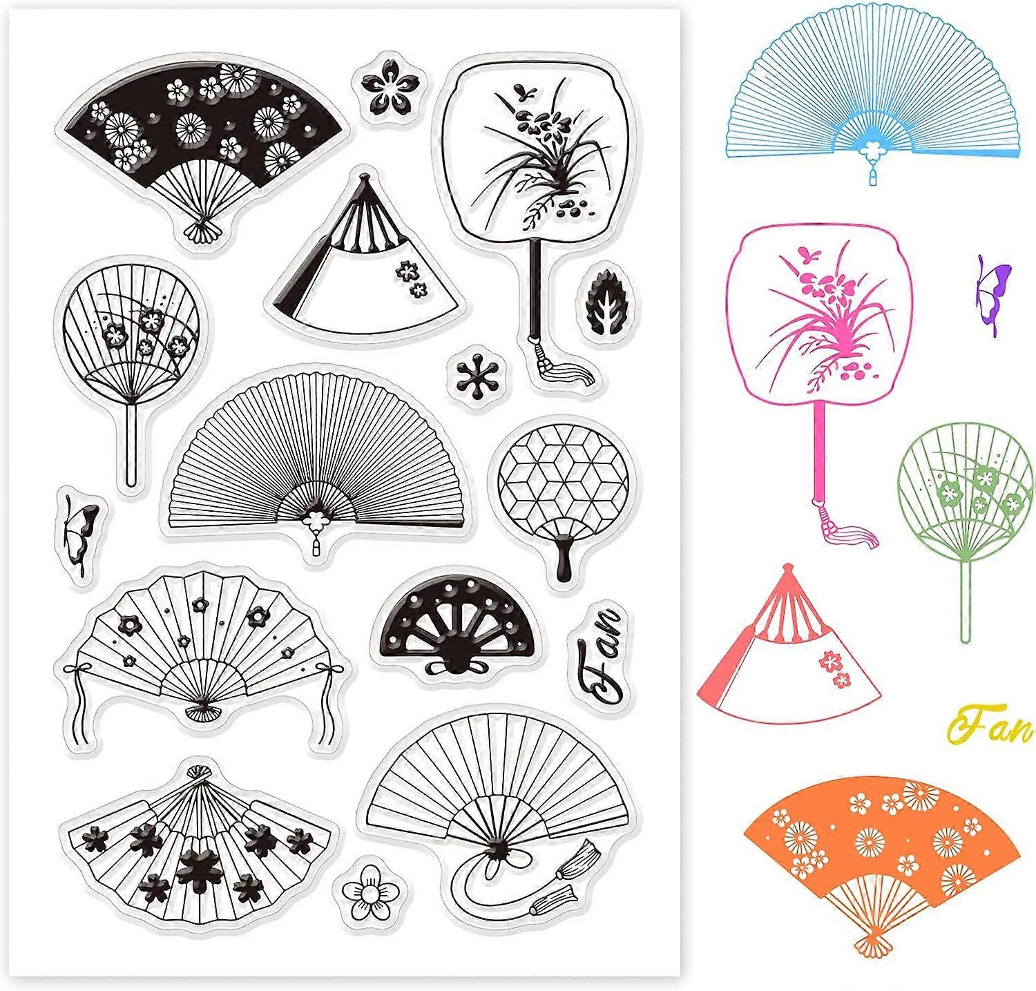 Fan Theme: You will get 1 sheet about 6.3inch/16cm long and 4.3inch/11cm wide clear stamps with different shapes of fans. Suitble to make a complete set of clip art full of oriental style.Safe Material: Made of environmental silicone material, healthy, tasteless and safety will not stimulate your skin. It is soft and not easy to break or deform, allowing you to use for a long time.Easy To Use: Simply peel the desired image or images off the plastic index sheet and position on a clear acrylic block. Apply ink and stamp with light pressure, then you will get the desired pattern. (The acrylic block is not include in package)Reusable: Silicone rubber stamps easy to use and clean, can be used repeatedly after cleaning or washing with water and easy to return to carrier to avoid losing pieces.DIY Handicrafts: These lovely clear stamps perfect for adding distinctive stamped embellishments to diary, album, notebook, journal, holiday cards, scrapbooking, gift tags and any other craft projects.