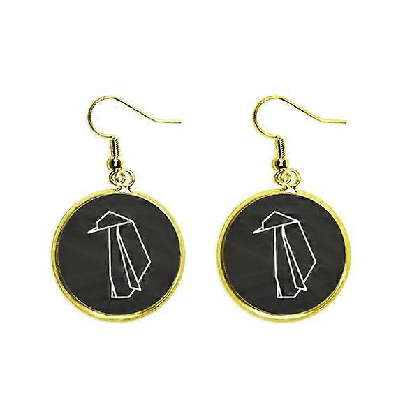 Origa Penguin Geometric Shape Ear Dangle Golden Drop Earring Jewelry Woman