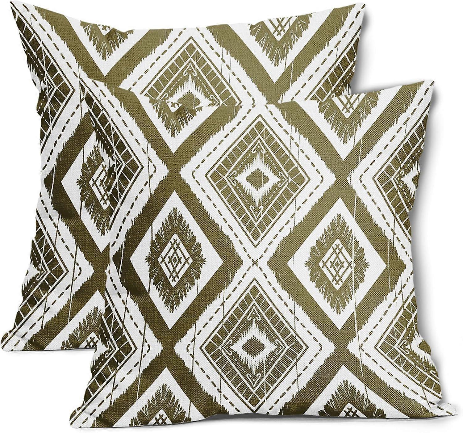 Olive Green Geometric Pillow Covers 20X20 Inch Rustic Ivory Diamond Ikat Couch Pillow Cases Boho Modern Chic Square Cushion Cover Set of 2 Home Decor