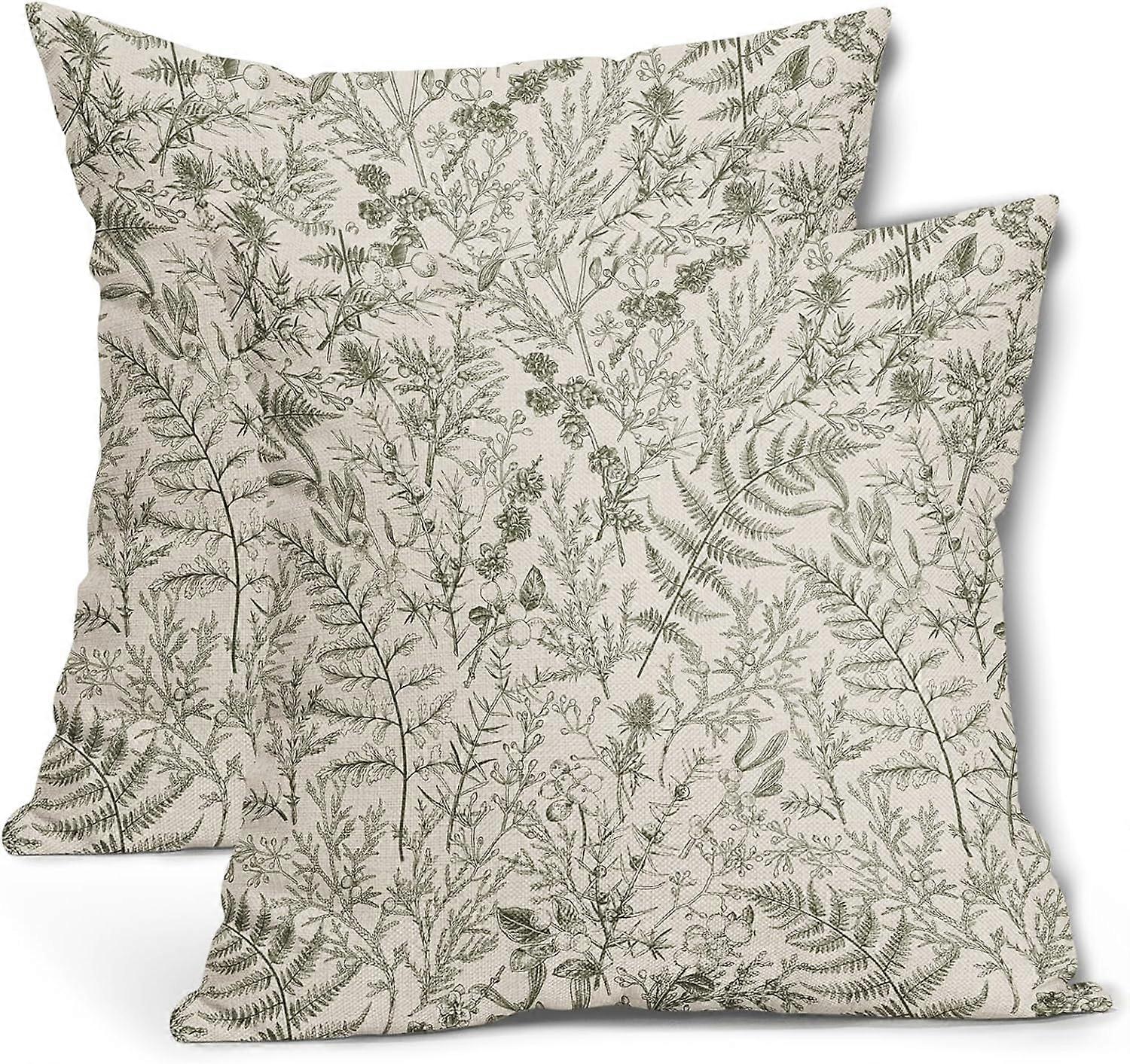 Olive Green Fern Leaves Pillow Covers 16X16 Inch Plant Leaf Floral Pine Decorative Pillow Cases Vintage Botanical Spring Summer Throw Pillows Set of 2