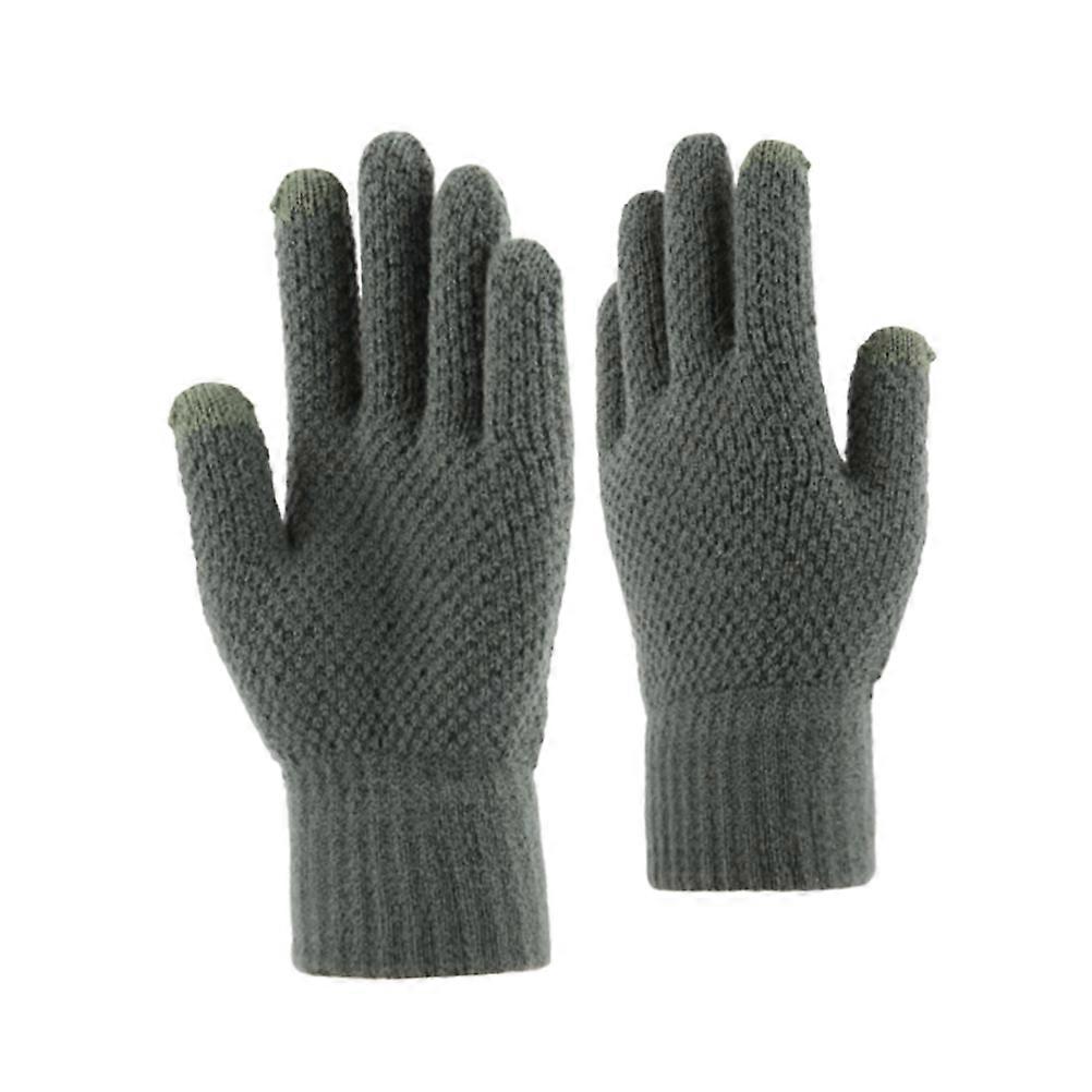 Olive Green Touch Screen Gloves for Men Winter Wear Imitation Wool Plush Material Size 1 Pair