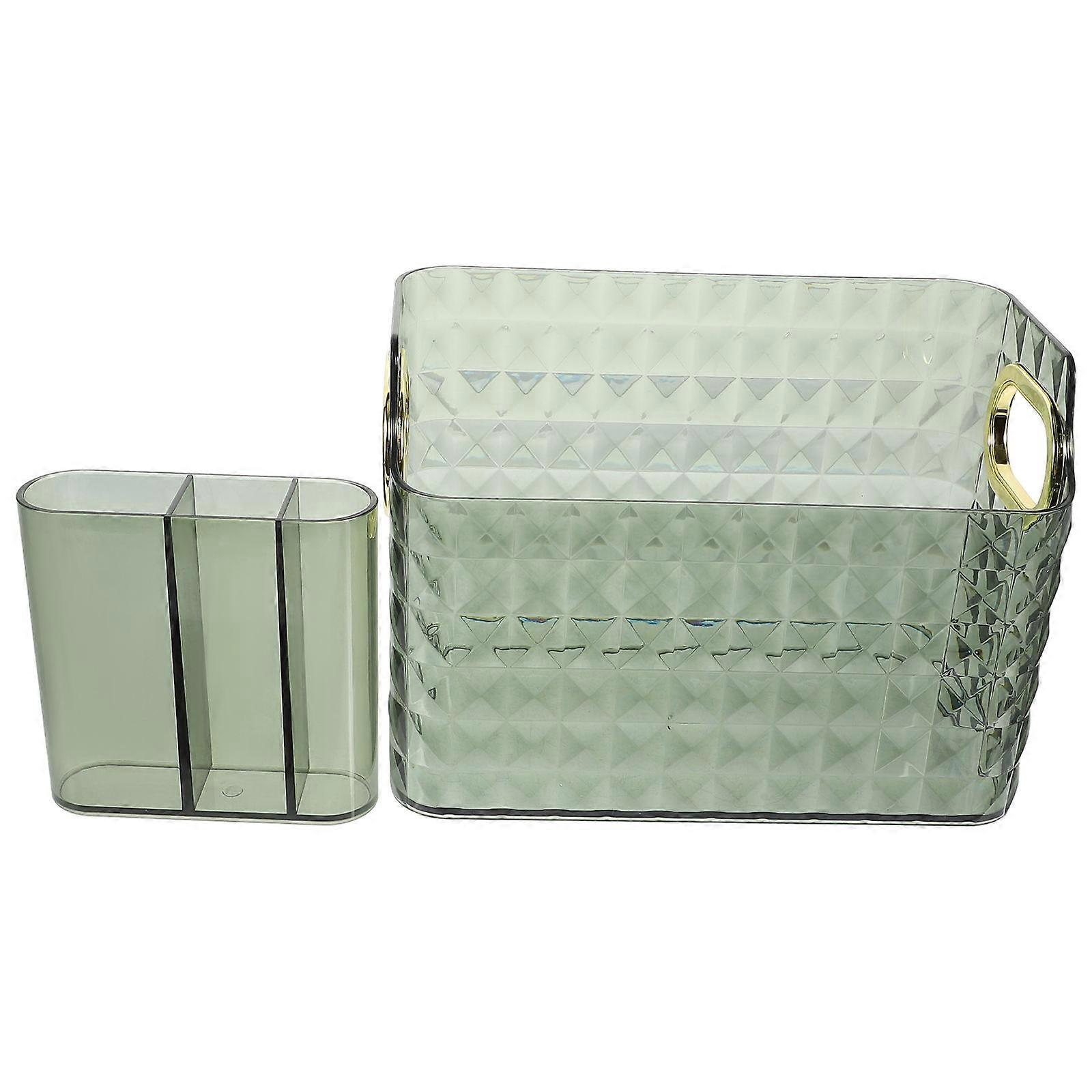 Olive Green Makeup Brush Holder Organizer in PET Material for Home with Flat Bottom Design 7.5 x 4.5 inches