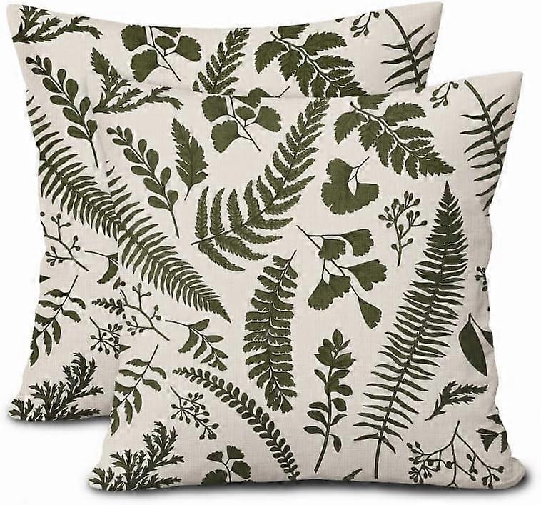 Olive Green Leaf Plant Pillow Covers 18X18 Inch Set of 2 Tropical Fern Herbs Botanical Leaves Floral Decorative Pillow Cases Vintage Cushion Case Farm