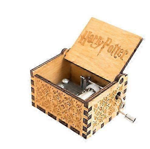 music box, hand-cranked wooden music box - wooden carved painted music box