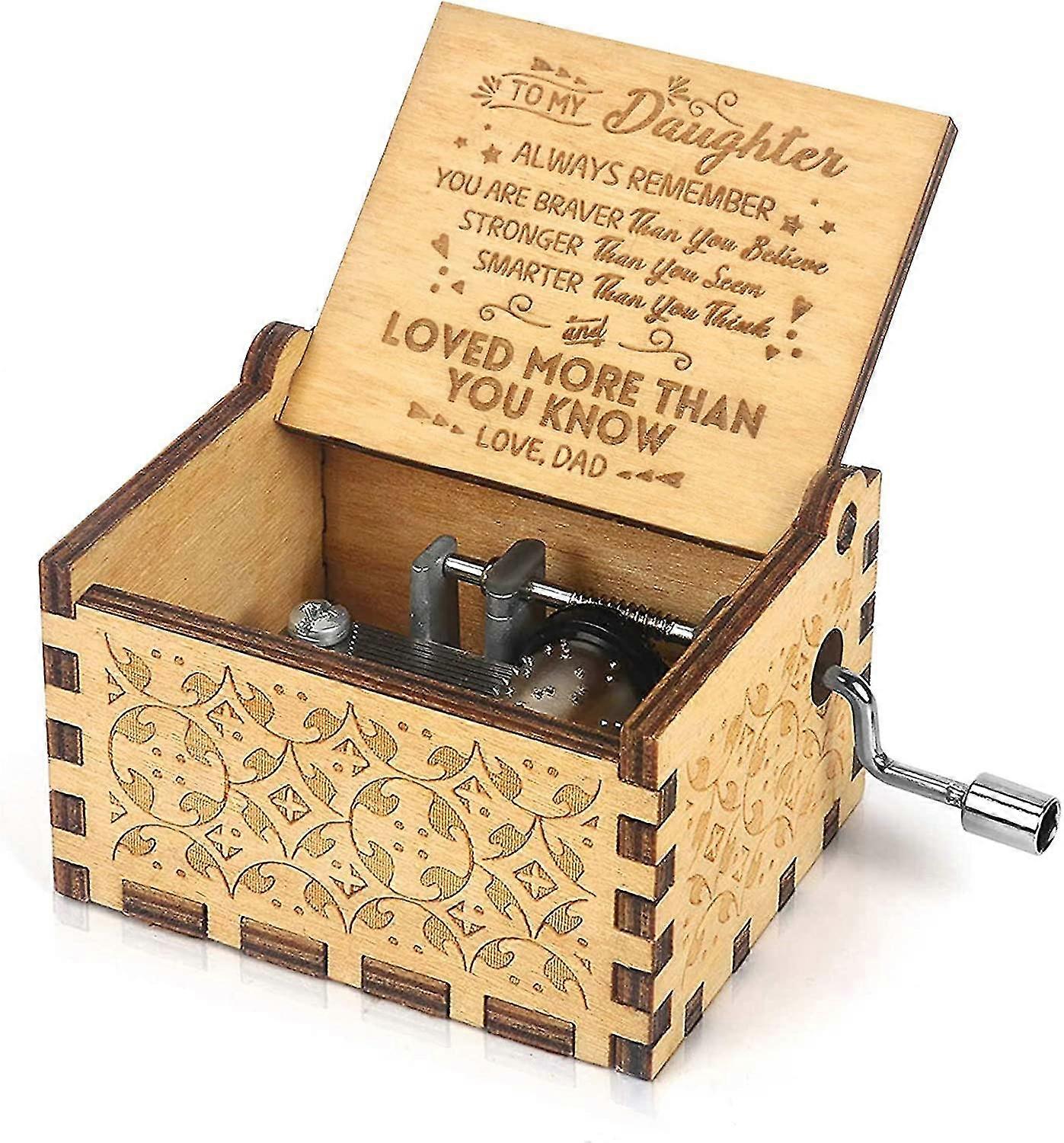 Music Box Hand Crank Engraved Musical Box-u R My Sunshine Mechanism Antique Vintage Gift To My Daughter From Dad