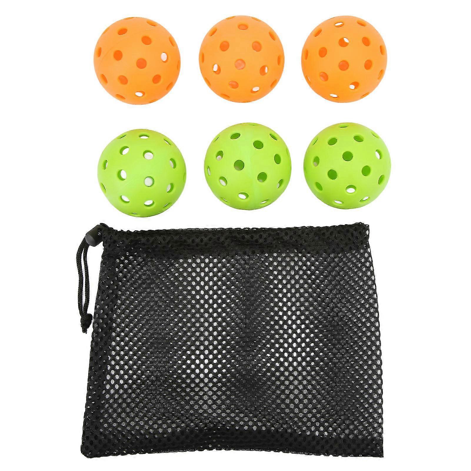 Outdoor Pickleball Ball Set of 6 Training Balls for Courts in Orange and Green