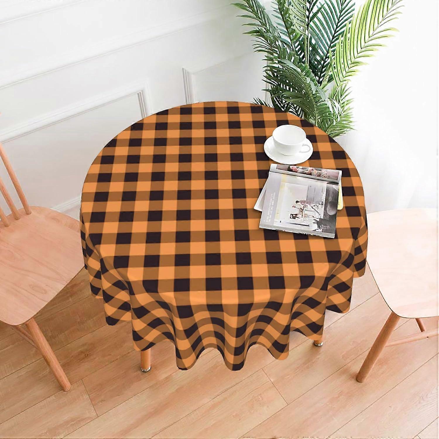 Orange Black Buffalo Plaid Christmas Round Tablecloth - Christmas Checkered Table Cover Round 60 Inch for Fall Thanksgiving Water-Repellent and Reusab