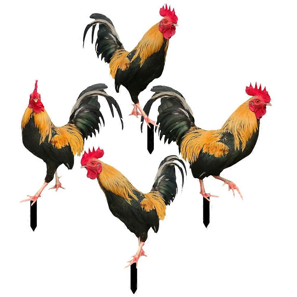 Rooster Garden Stake Decoration 4Pcs Acrylic Assorted Color Outdoor 18.2X25.5CM