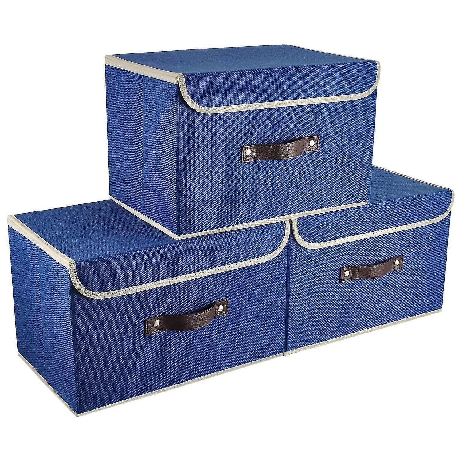 Organizer Folding Organizer Organizer for Clothes Toys Home Magazine Office Children's Room Wardrobe Bedroom (38 x 25 x 25 cm - 3 Pieces Navy Blue)