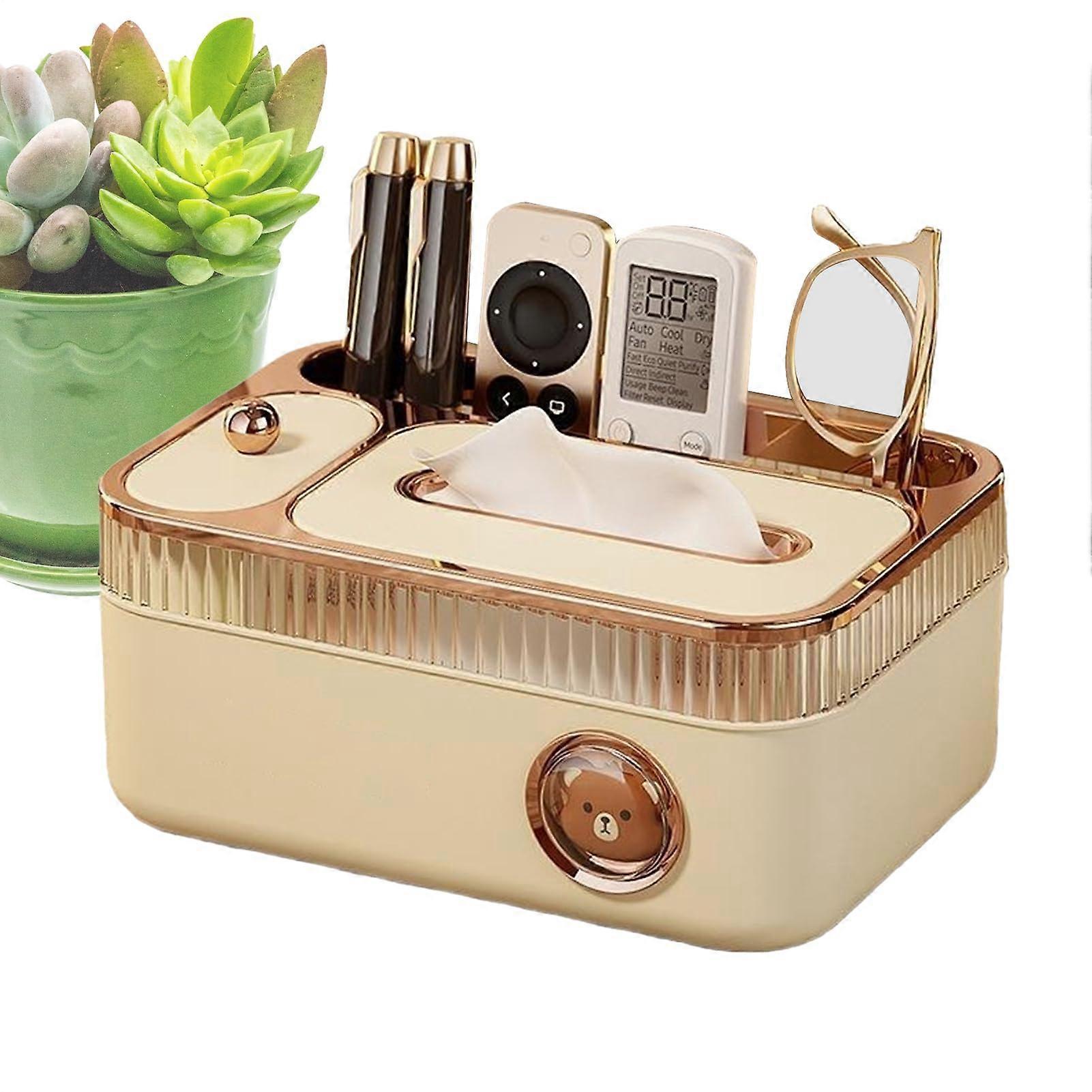 Tissue Box Cover with Organizer Compartment, Remote Holder for Living Room Orange