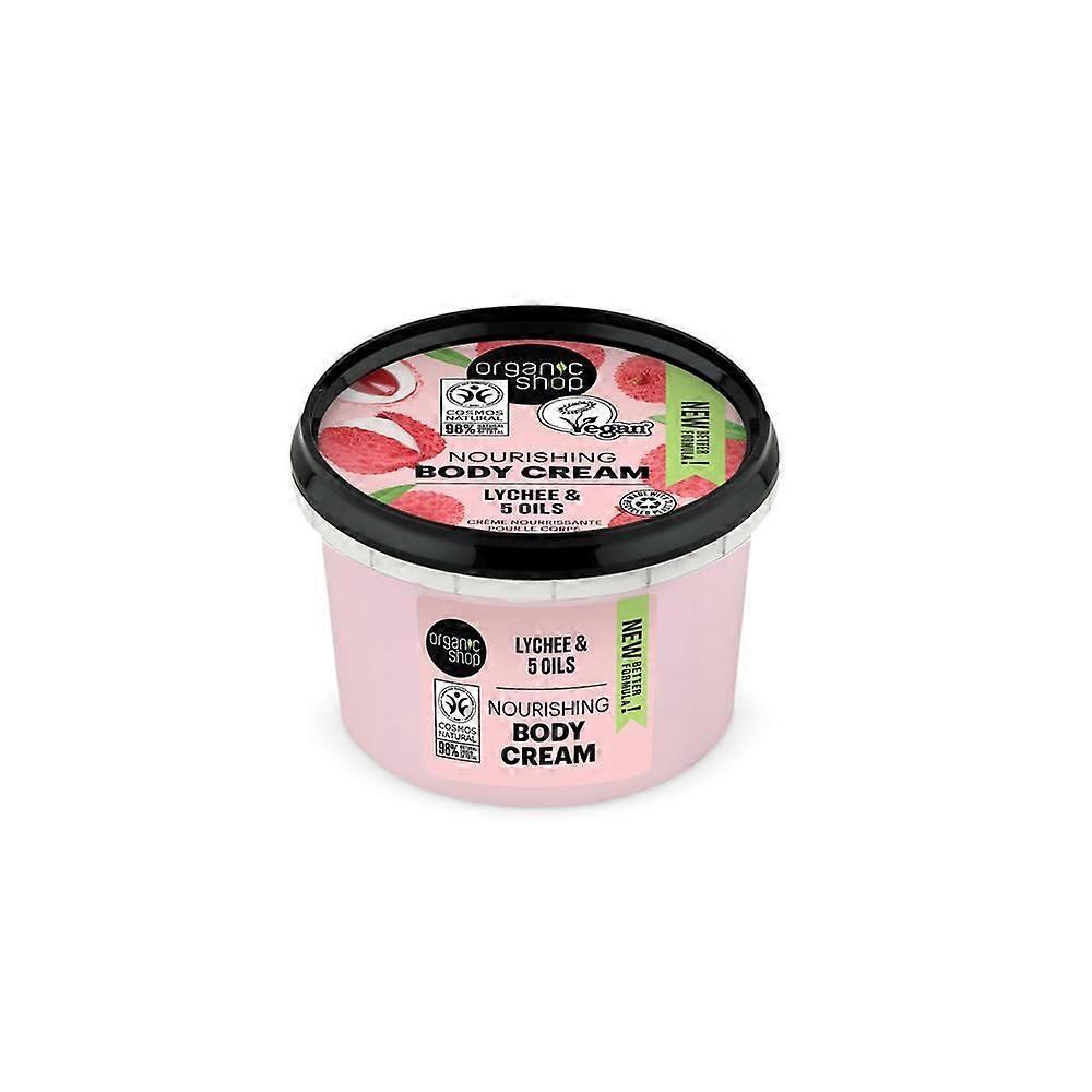 Experience the gentle care of this light body cream enriched with organic lychee extract and a blend of five nourishing organic oils including avocado, borage, wheat germ, alongside rich organic cocoa and shea butters. Formulated to saturate your skin with essential vitamins, it deeply nourishes and enhances skin softness and silkiness, leaving your body feeling refreshed and revitalized. Made with 98% ingredients of natural origin, this cream respects your skin's natural balance while providing effective hydration and protection against dryness. Its lightweight texture absorbs quickly without leaving a greasy residue, making it ideal for daily use on all skin types. Certified COSMOS Natural by BDIH and Vegan by The Vegan Society, this product guarantees high standards of natural and ethical formulation, perfect for those seeking clean and responsible skincare solutions. Benefits: Deeply nourishes and moisturizes the skin Improves skin softness and silkiness Light and fast-absorbing texture Rich in vitamins and antioxidants from organic ingredients Suitable for all skin types, including sensitive skin Eco-friendly and vegan-certified formulation Usage: Apply generously to clean, dry skin and gently massage until fully absorbed. Use daily, especially after showering or whenever your skin needs extra nourishment and hydration.