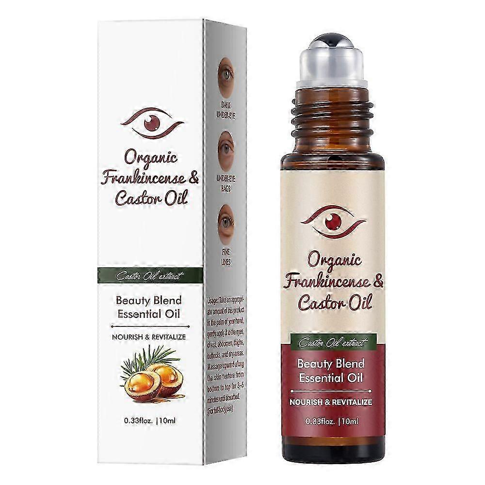 Organic Castor Oil & Frankincense Essential Oil Under Eye Roll On, 100% Pure Castor Oil for Face Wrinkles, Dark Circles, Puffy Eyes, Anti-Aging, 10ml
