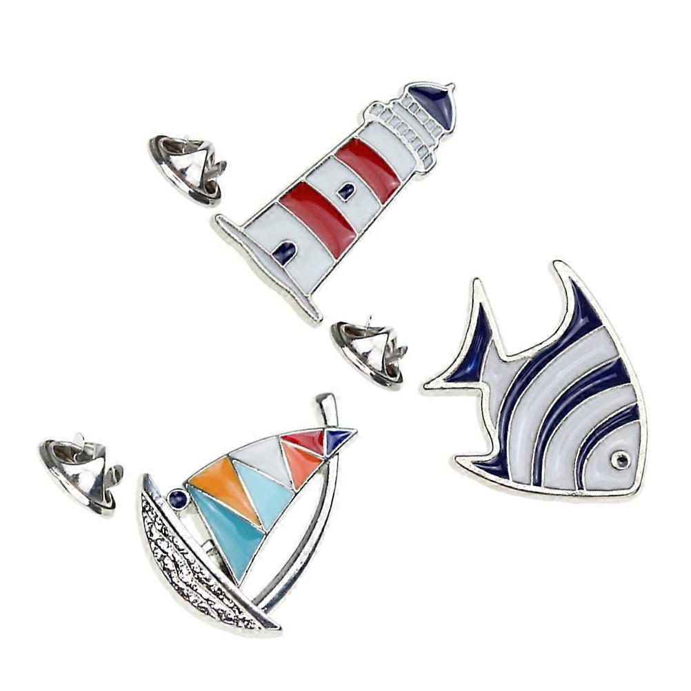 Ocean Animal Charms Brooch Lighthouse Sailboat Jewelry 3Pcs