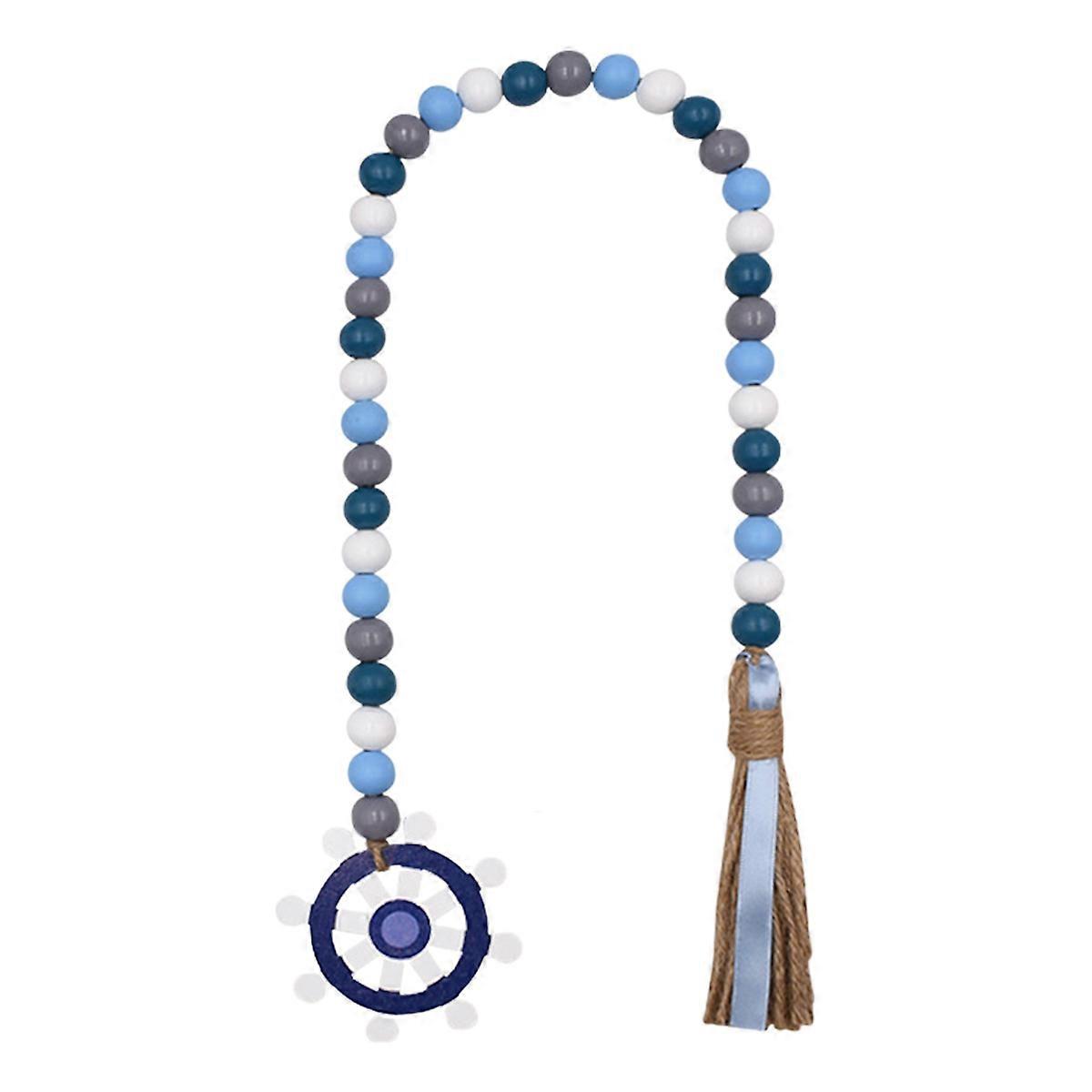Ocean Wood Bead Garland: Farmhouse Style Beads with Tassels for Coastal Home Decor