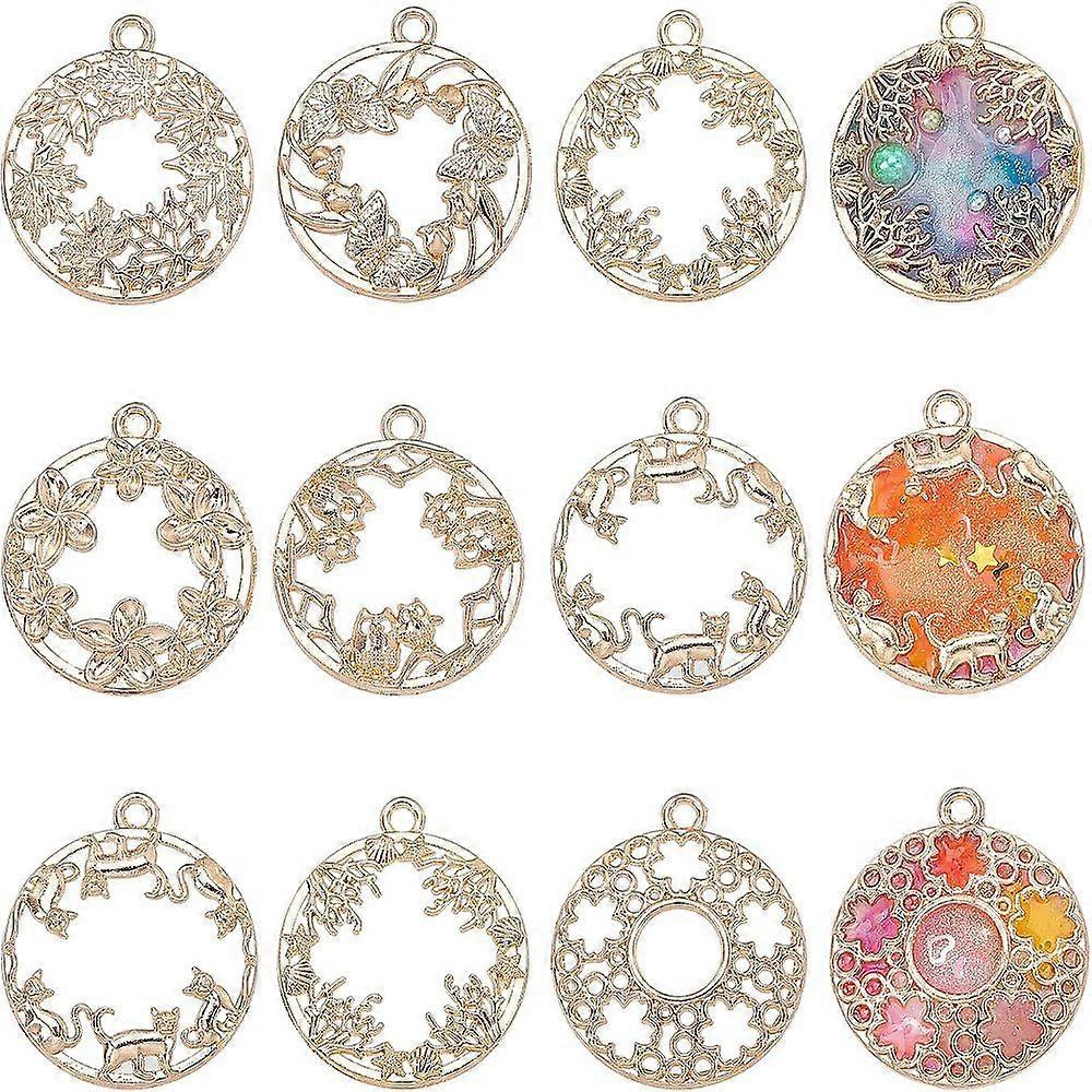 Ocean & Plant Series Zinc Alloy Open Back Bezel Pendants For DIY UV Resin Epoxy Resin Pressed Flower Jewelry Light Gold 34x30x3mm Hole: 3mm 28pcs/box