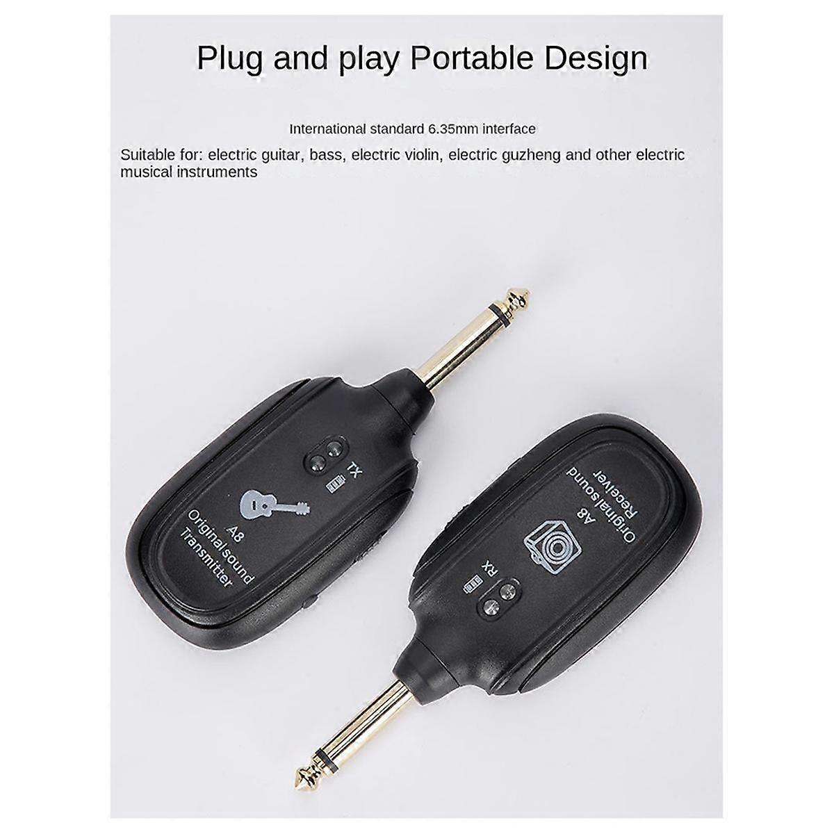 Easy plug-and-play setup: Automatically pairs in seconds and lets you easily switch between active and passive pickup patterns This wireless system offers unparalleled freedom and ease of use, making it ideal for musicians . UNIVERSAL COMPATIBILITY & PORTABILITY: Designed to work seamlessly with guitar, bass, violin, keyboard, and more. This compact and system is engineered to fit all jack types, making it a versatile choice for a wide range of instruments. User-friendly design for all skill levels: just plug in and start playing. This system is built for beginners and professionals alike Whether you are practicing or in the comfort of your own home, this provides maximum convenience. Colour:As Shown Material:ABS+Metal Package Contents: 1 x Audio wireless transmitter 1 x receiver Only the above package content, other products are not included. Note: Light reflection and different displays may cause the color of the item in the picture a little different from the real thing. The measurement allowed error is +/- 1-3cm.