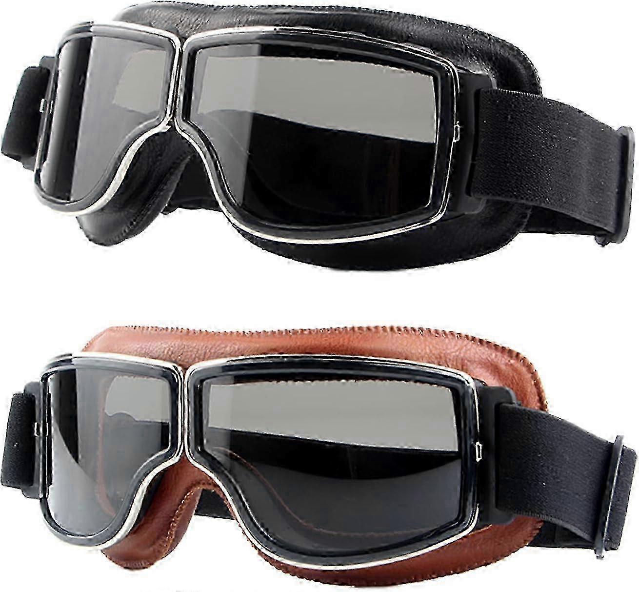 Motorcycle Goggles,2 Pack Vintage Anti Fog Pilot PU Leather Glasses Dustproof ATV Off Road Motorbike Helmet Eyewear Protect