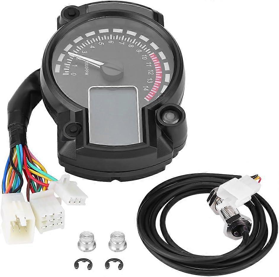 Features:- Tachometer, speedometer and gear indicator combined into one, a high performance kit for motorcycle.- Made of electrical components that adopted chip technology, stable performance and high accuracy.- Comes with speed sensor, ensures its accuracy and professional performance.- Anti-glare backlight display, easily viewing at all angles during lighting conditions or in the darkness.- The screen color is 7-color adjustable by long pressing the right button when under ODO condition, a great add-on decoration for your motorcycle.- Robust ABS shell with clear lens, waterproof and impact resistance, allows to withstand slight collision.