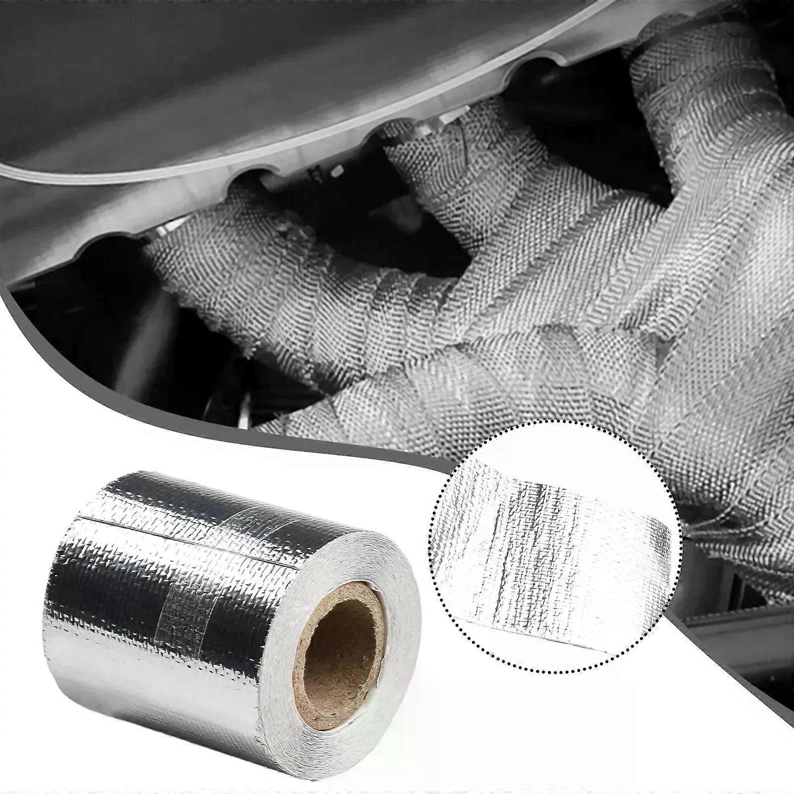 Motorcycle Exhaust Pipe Heat Insulation Tape Thermal Wrap Silver 5M*5cm & 6 Ties Proof Sunscreen Heat Aluminum Foil
